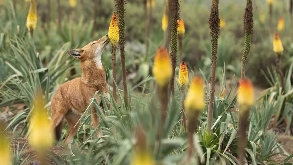 In the late 1980s, biologist Claudio Sillero made an intriguing discovery on one of his first field trips to study wolves in Ethiopia. While observing the behavior of these elusive predators, he noticed something entirely unexpected: Ethiopian wolves were licking the flowers of the Kniphofia, or red hot poker plant, native to the country’s highland regions. This marked the first recorded instance of a large carnivore indulging in nectar, a behavior previously documented only in smaller mammals.